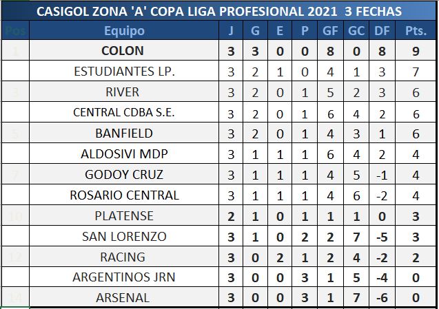 TABLA DE POSICIONES