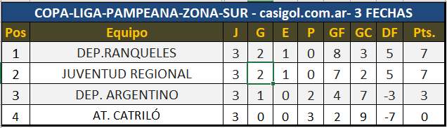 Se completó la tercera fecha del torneo Copa Liga Pampeana de fútbol para las zonas Norte y Sur. Los resultados de los cuatro partidos que se disputaron entre miércoles y jueves fueron los siguientes.