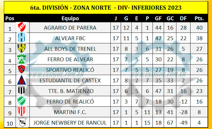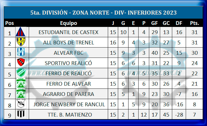 Se disputó la décimo séptima fecha (octava de las revanchas) del torneo de divisiones inferiores, organizado por Liga Pampeana de fútbol. La misma se completó para las zonas Sur y Norte en las categorías Séptima, Sexta y Quinta división. La síntesis de lo acontecido en la jornada de hoy es la siguiente: