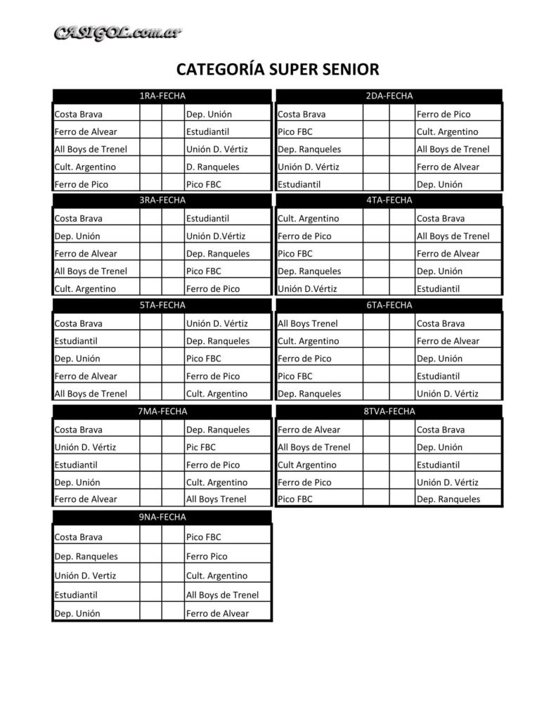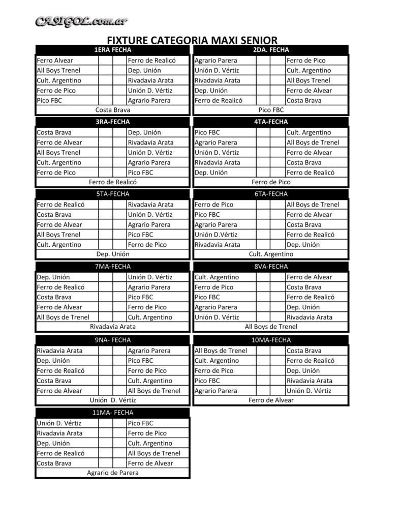 El departamento de fútbol para veteranos dio a conocer a través de su sitio solo senior, el fixture del fútbol para el torneo apertura 2018 que inicia en el día de hoy.