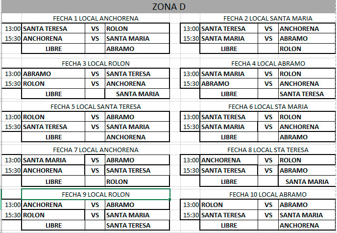 La zona D, ya inició en el día de ayer domingo 5 de septiembre y el resto de las zonas  comenzarán la disputa el domingo 19 del corriente mes.