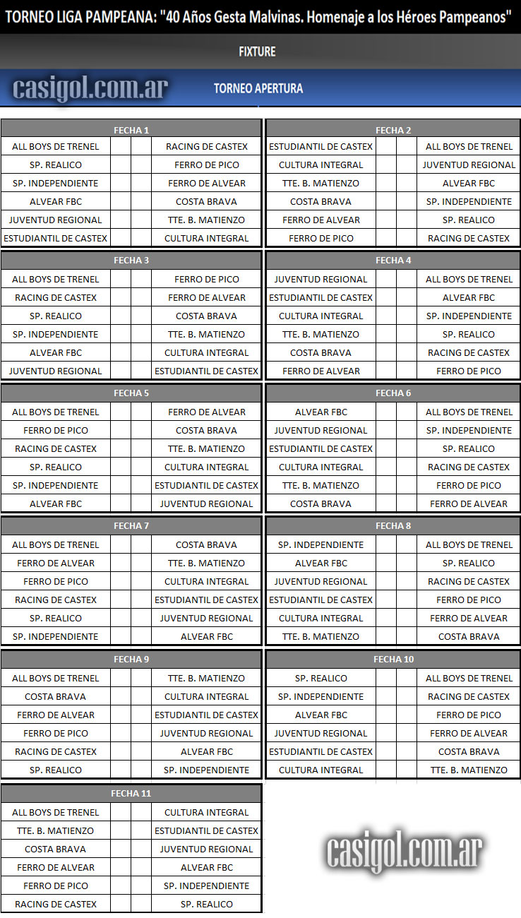En sede de Liga Pampeana se sorteó hace instantes el torneo oficial de la temporada 2022, el cuál se denominará "40 años de la Gesta de Malvinas. Homenaje a los Héroes Pampeanos". El mismo dará comienzo el primero de mayo y a continuación posteamos para ustedes el fixture del apertura.