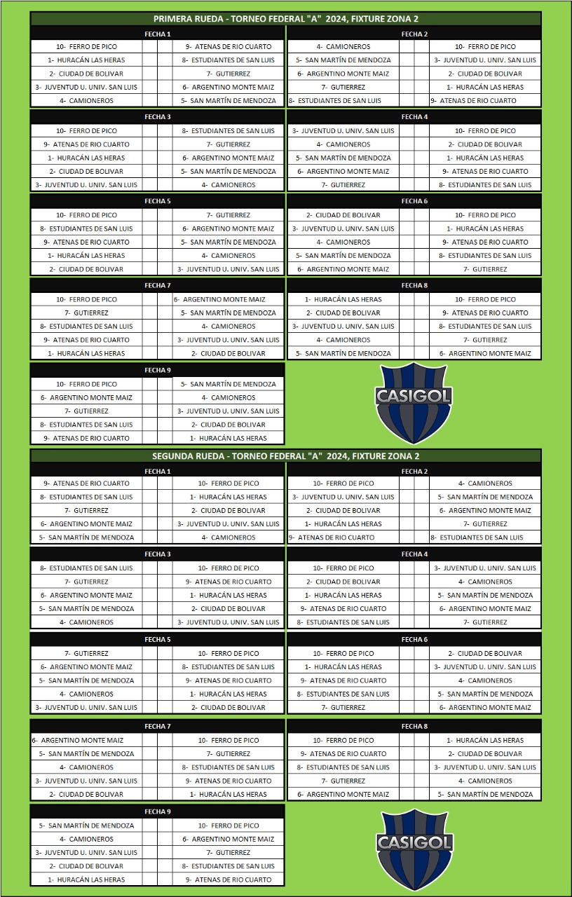 El CFFA dio a conocer los fixture del torneo Federal "A" el cuál disputará Ferro de nuestra ciudad y estará en la zona 2 junto a Atenas de Río Cuarto, Huracán Las Heras, Estudiantes y Juventud Unida Universitario de San Luis, Ciudad de Bolivar, Gutierrez Sport Club (Mendoza), Argentino de Monte Maiz, Camioneros y San Martín de Mendoza.
