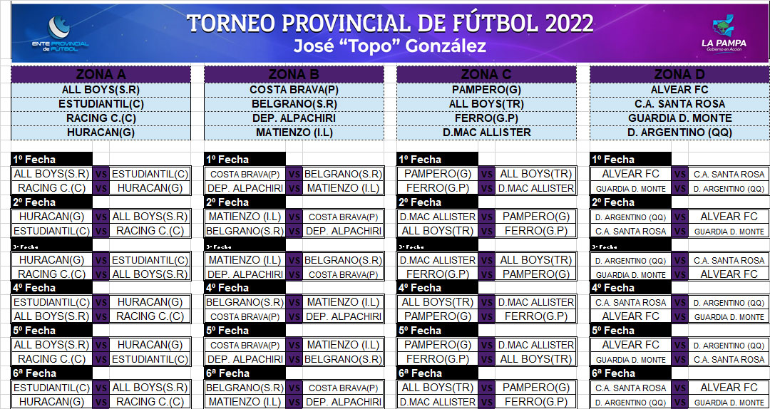 Se sorteó el fixture para el torneo provincial de fútbol masculino el cuál fue denominado " José 'topo'" Gonzalez. La zona "A" es una de las más difíciles, en la cuál habrá clásico castense.