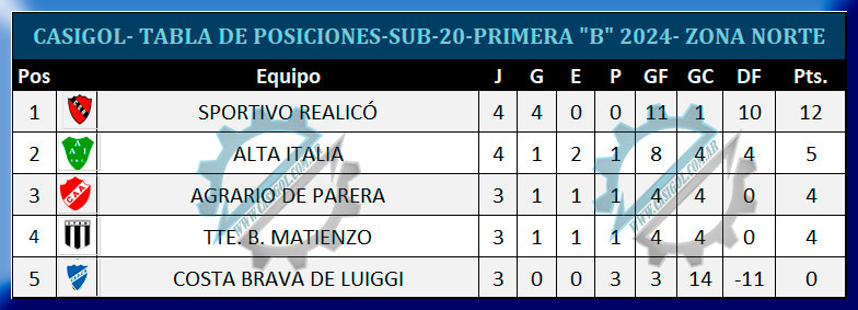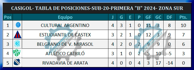 TABLA DE POSICIONES SUB 20.