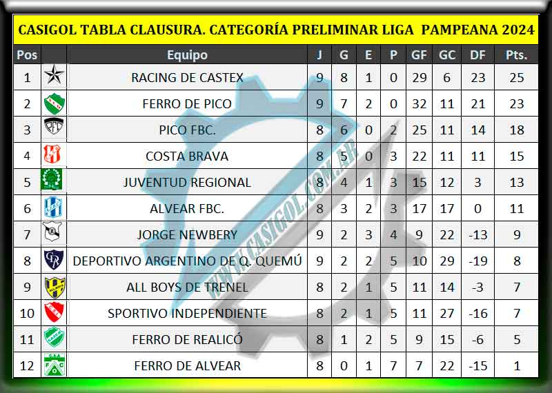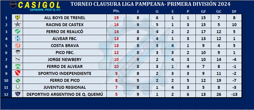 En el otro encuentro disputado en Castex, Racing lo ganó con comodidad, ante un Deportivo Argentino, que se plantó en los primeros minutos, pero tras el gol, y posterior expulsiónde de Santos, Racing amplió la ventaja y lo ganó con comodidad, para quedar a tres del líder.