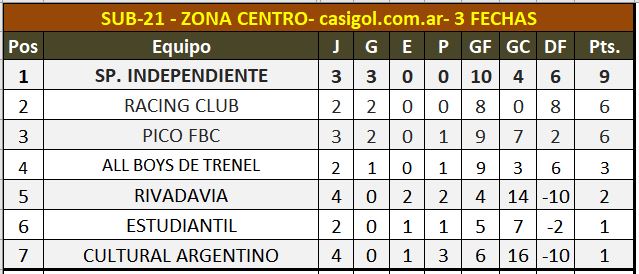 Se disputó la cuarta fecha del torneo transición de Liga Pampeana de fútbol en categoría sub21. Los resultados en las tres zonas, la tabla de posiciones y la próxima fecha, quedan expresadas a continuación:
