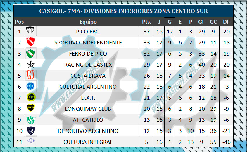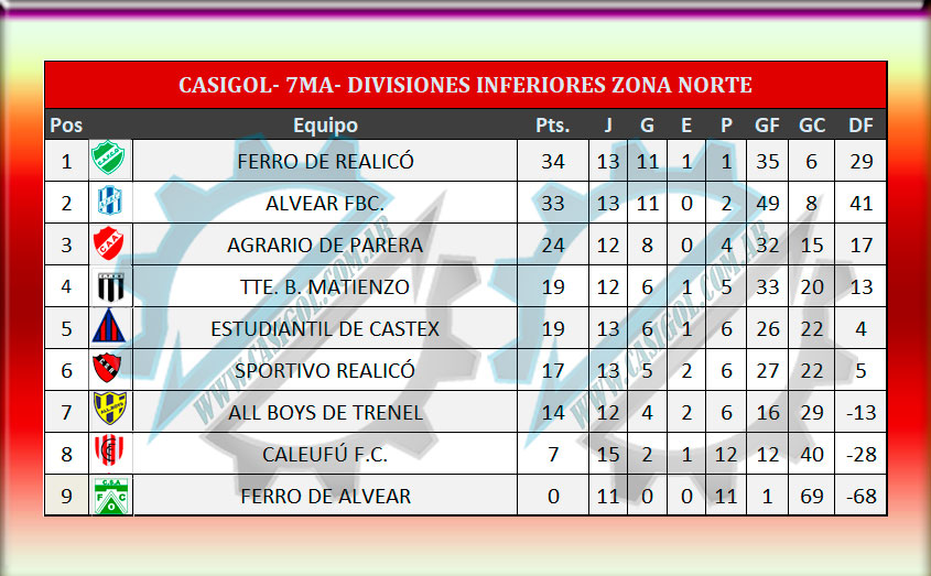 Se completó la séptima fecha de la segunda rueda del torneo oficial de divisiones inferiores para las tres categorías organizadas en las zonas centro sur y norte.