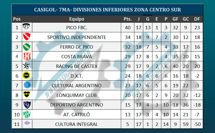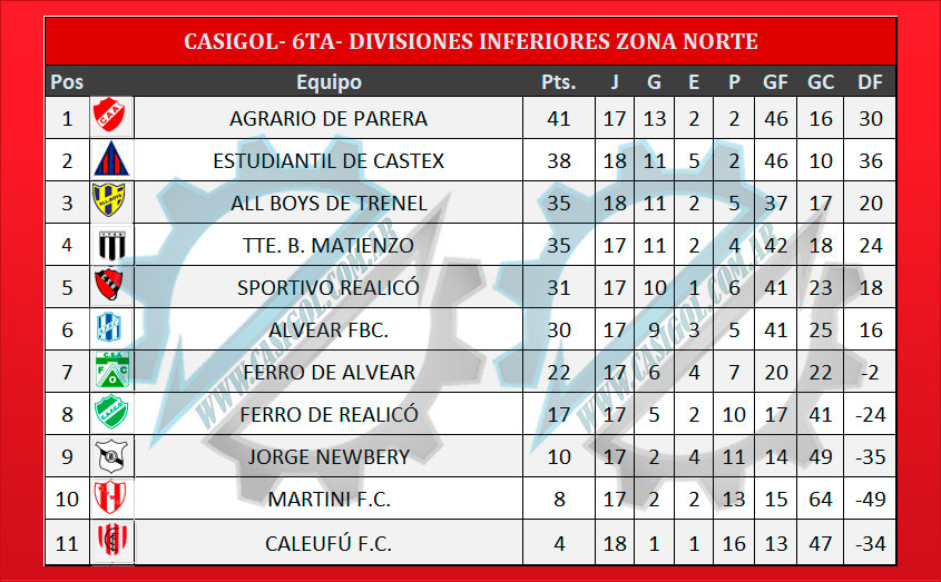 Se completó la octava fecha de la segunda rueda del torneo oficial de divisiones inferiores para las tres categorías organizadas en las zonas centro sur y norte.
