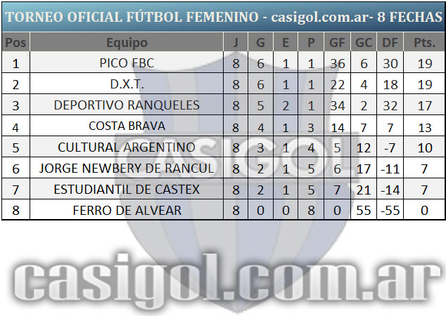 Se disputó la primera fecha de la segunda rueda del torneo de fútbol femenino. La misma se llevó a cabo íntegramente en Rancul, en cancha de Jorge Newbery. en primer turno Estudiantil se midió con Cultural Argentino, luego el líder Pico FBC lo hizo con DXT, en tercer turno el local Jorge Newbery hizo lo propio con Costa Brava y  cerraron la jornada Ferro de Alvear y Deportivo Ranqueles.