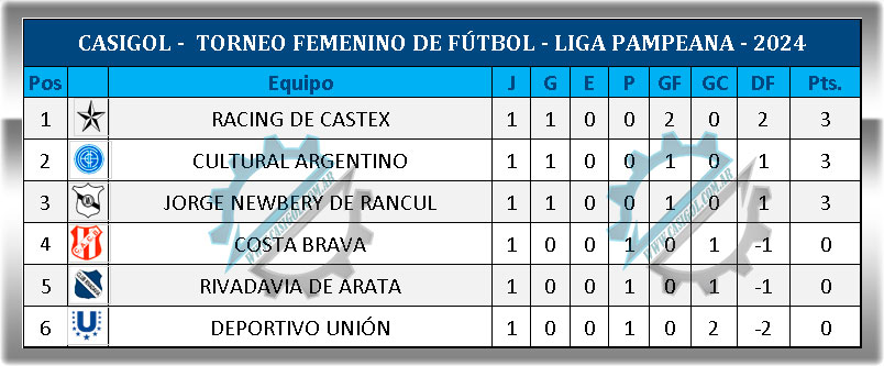 En la fría mañana de domingo en General Pico, dio comienzo el torneo femeni de fútbol de Liga Pampena en primera división. Con la presencia de las autoridades del Departamento femenino Daniel Busamante y el Presidente de Liga Pampeana Luis Ovin y Vicepresidente Rubén Alvarez, comenzó a rodar el balón en el estadio "el Fortín", donde Deportivo Unión en primer turno recibió a Racing de Eduardo Castex.