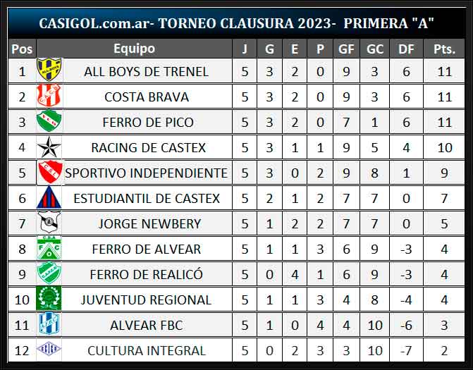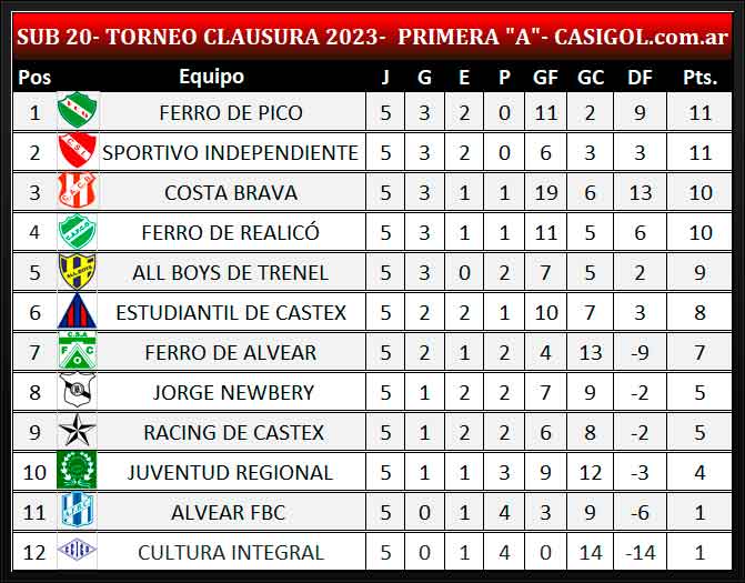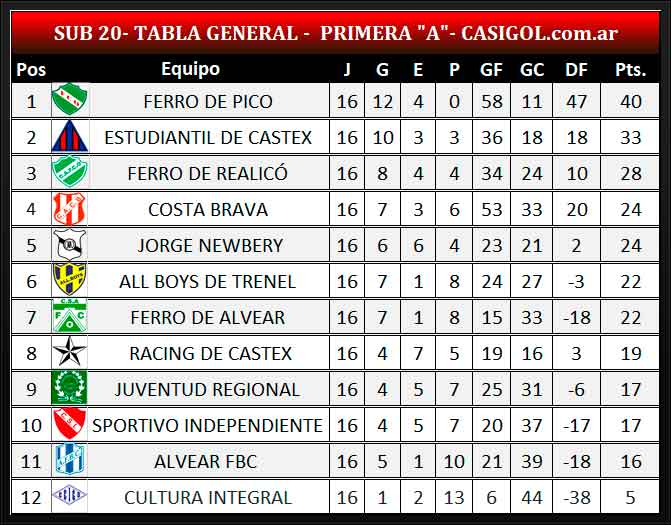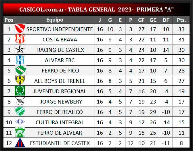 Se disputó la fecha 16 del torneo de Liga Pampeana en primera división "A" quinta del clausura. Sportivo Independiente derrotó a Alvear, Costa empató con All Boys en Trenel, Ferro igualó con Realicó con su homónimo norteño, Racing de Castex ganó en Cané, Ferro de Alvear cosechó su primer triunfo ante Cultura Integral y Estudiantil consiguió un triunfo ante Jorge Newbery de Rancul.