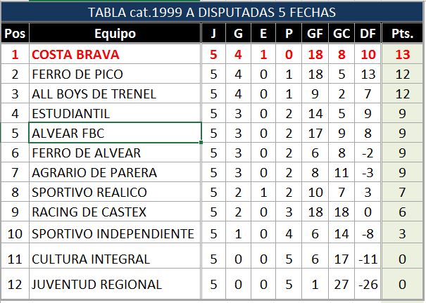 Cat.1999: Racing de Castex 7 vs. 0 Juventud Regional