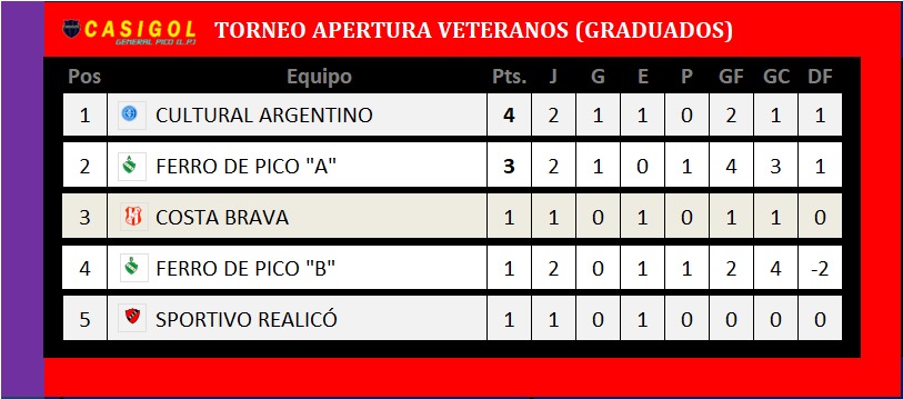 Un partido parejo, entre el puntero (Cultural Argentino) y el último campeón de la especialidad que debutaba en la tarde de hoy (Sportivo Realicó), ambos buscaron quedarse con el partido pero las defensas se impusieron por sobre los ataques y el resultado finalizó con el marcador en blanco y como sice mi amigo Adrian, "carita fea" para ese partido.