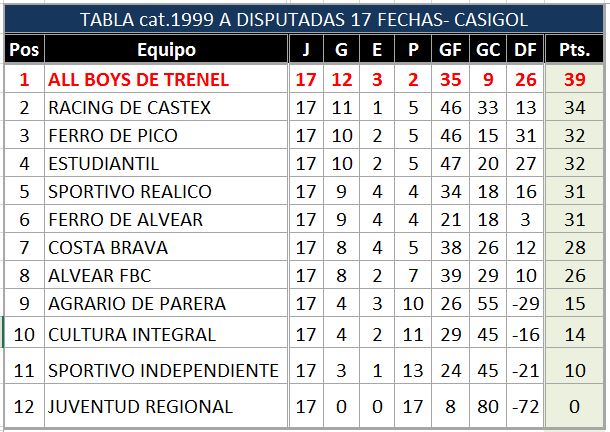 CAT. 1999: All Boys de Trenel 3 vs. 2 Costa Brava