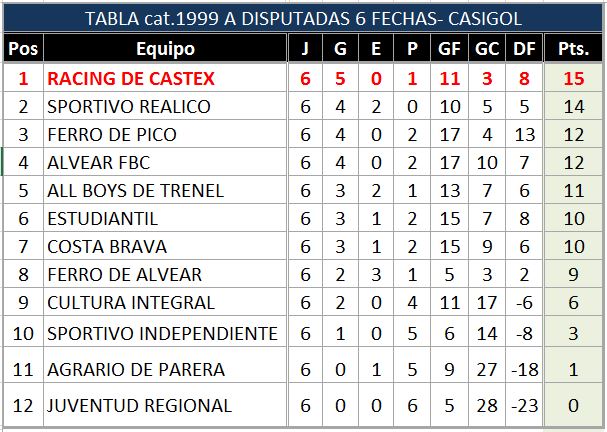 TABLA DE POSICIONES CLAUSURA CAT 1999