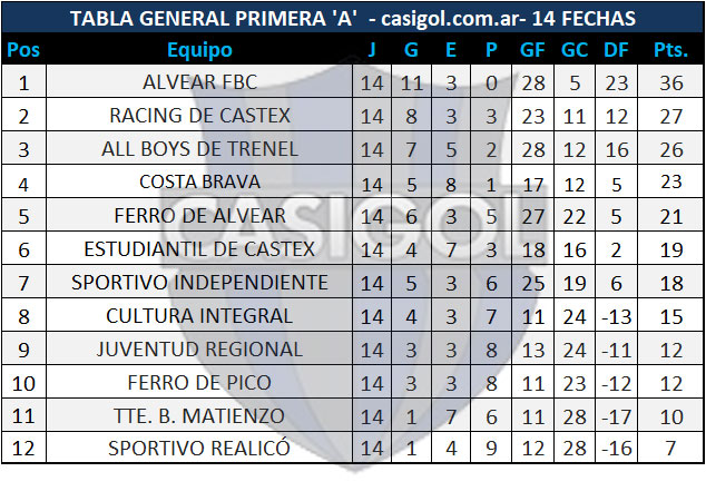 Se disputó la fecha 14 (3ra de la segunda rueda) del torneo de fútbol de Liga Pampeana en primera división "A".