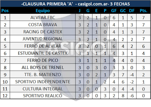 Triunfo de Costa ante Sportivo Realicó, Alvear en Barón ante Cultura Integral, Racing en Alvear ante Ferro, y Juventud Regional en Castex ante Estudiantil,  e igualaron Ferro All Boys y  Tte B Matienzo Sp. Independiente