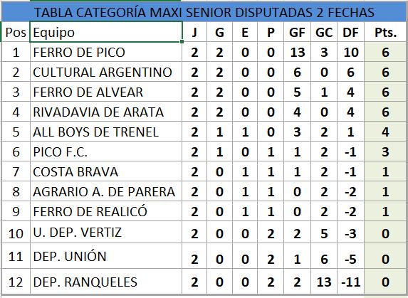 • DEP. RANQUELES 2 ( Raúl Miranda - Nicolás González) VS. FERRO DE PICO 10 (Pablo Silvestre (4)-Eduardo Salvadori(2) - Santiago García(2) - Gastón Ercoli - Marco Barbera)