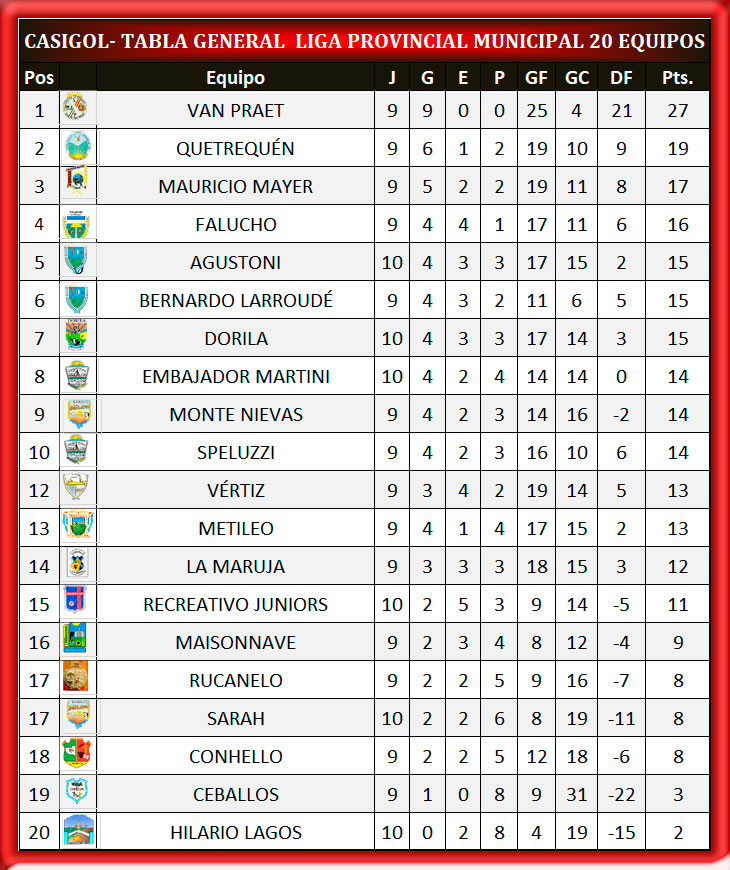 TABLA DE POSICIONES- GENERAL