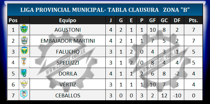 TABLA DE POSICIONES- CLAUSURA
