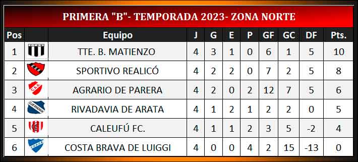 En la tarde de hoy se completó la cuarta fecha del torneo de Ascenso de Liga Pampeana para las zonas Norte y Centro Sur. La misma había comenzado en el "Parque Rojo" con el empate en primera división entre Sportivo Realicó y Rivadavia de Arata.