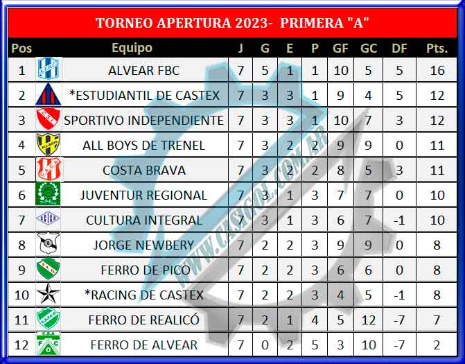 Nota: Nuestra tabla agrega el punto del partido que hasta el minuto 8' sumaban Racing de Castex y Estudiantil.
