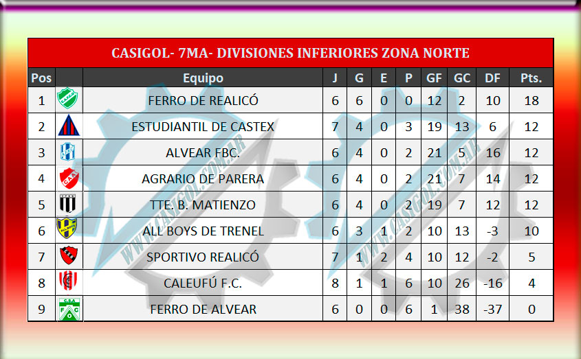 Se disputó la novena fecha del torneo oficial de divisiones inferiores para las tres categorías organizadas en las zonas centro sur y norte.