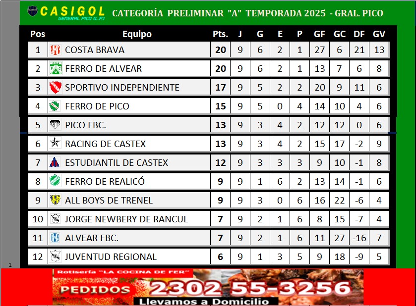 SÍNTESIS DE LA NOVENA FECHA DEL CLAUSURA DE LIGA PAMPEANA