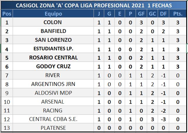 Con el interzonal entre Sarmiento de Junín y Platense pendiente sin fecha establecida aún, finalizó la primer fecha de la Copa Profesional de Fútbol Argentino.