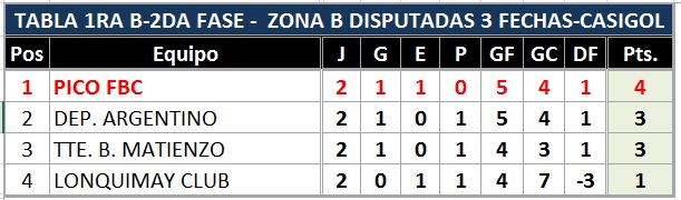 Se disputó la segunda fecha del torneo de Primera B en su segunda fase. Por la zona A ganaron Ferro de Realicó y Cultural Argentino en tanto que por la B, Pico FBC , derrotó a Matienzo por tres a dos y Dep. Argentino dio el batacazo goleando a Lonquimay de visitante