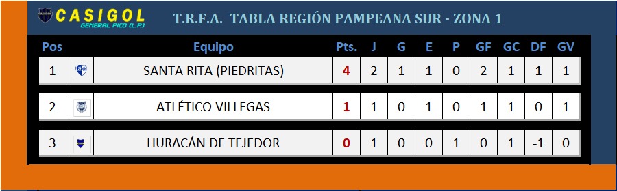 HURACÁN DE CARLOS TEJEDOR 0 vs. 1 SANTA RITA DE PIEDRITAS