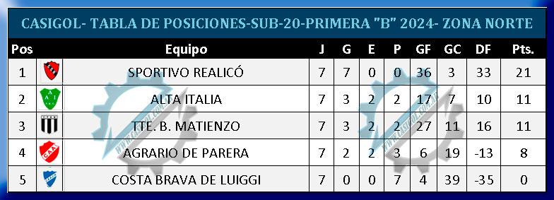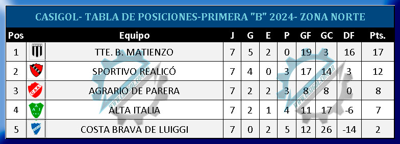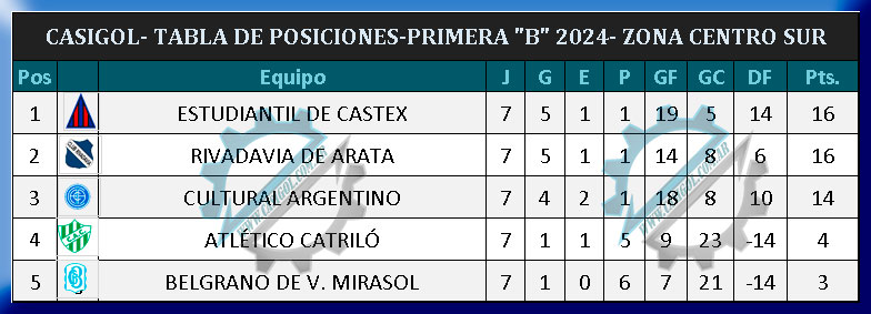 En la tarde de hoy se disputó la séptima fecha del torneo de primera "B"  segunda de las revanchas. Por la centro sur, ganó At. Catriló a Belgrano,  empataron Rivadavia y Cultural Argentino, y en el interzonal ganó Estudiantil sobre Costa de Luiggi.  En la norte, ganó Alta Italia y Tte. B. Matienzo.