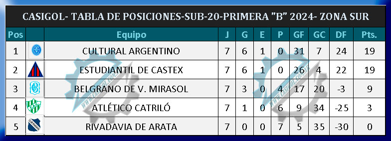 TABLA DE POSICIONES SUB. 20