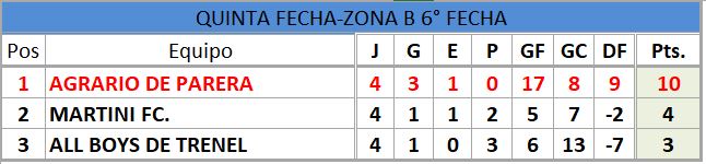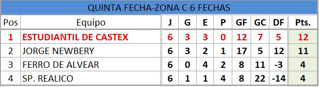 QUINTA DIVISIÓN (SEXTA FECHA)