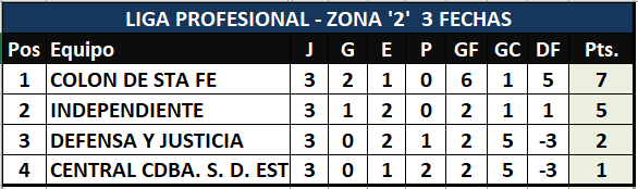 Con dos partidos, culminó la tercera fecha de la Liga Profesional de fútbol. En primer turno Velez derrotó por uno a cero a Patronato, y en segundo turno Colón hizo lo propio con Central Córdoba de Santiago del Estero por idéntico marcador.  Estos fueron todos los resultados de la tercera fecha que comenzó el pasado Viernes.