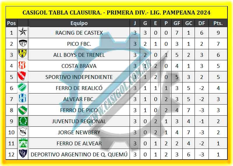 Sportivo Independiente derrotó a Ferro, Racing ganó en Cané y es líder, Costa no pudo con Jorge Newbery, Ferro de Realicó se hizo fuerte en Alvear , Allboys dererotó a Deportivo Argentino y Pico dio la nota derrotando a Alvear FBC. que ya no tiene a López en el Banco de suplentes.