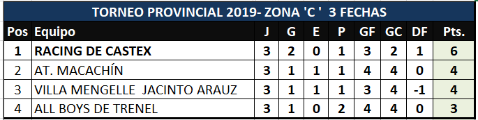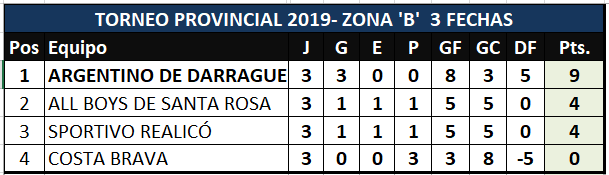 Se disputó la tercera fecha del torneo Provincial de Fútbol, "Clubes con Historia". Triunfo de Sportivo Independiente que es líder en la zona "D", con tres triunfos en tres presentaciones, Cultura consiguió su primera victoria de Guatraché. Por la zona "B", Costa que lo ganaba dos a cero finalmente cayó en Santa Rosa por tres a dos. Ganó Rácing en Macachín, y All Boys ante V. Mengelle por la "C" y Estudiantil goleó a Winifreda, en tanto que Sportivo Realicó derrotó a Independiente de Jacinto Arauz, y por la zona E, cayeron los dos de Alvear