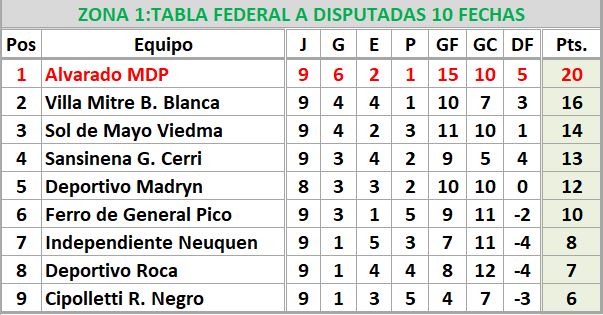 Se disputó la décima fecha del torneo Federal "A" Zona 1 primera de las revanchas. Ferro Visitó a Sansinena de Coronel CerrI y consiguió un valioso triunfo, el primero que consigue en calidad de visitante.