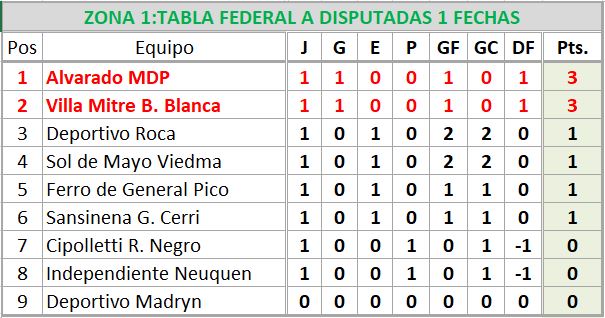 Arrancó el torneo Federal A, disputándose la primera fecha en la cuál ganaron Alvarado y Villa Mitre, el resto fue empate. El representante de nuestra ciudad Ferro Carril Oeste está en la zona 1 y los siguientes son los resultados tabla de posiciones y próxima fecha.