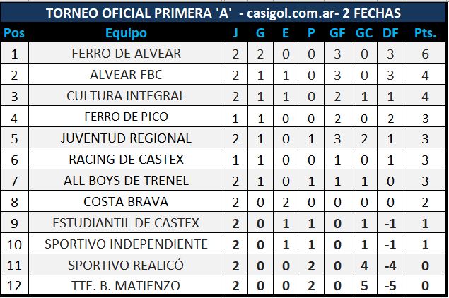 Se disputó gran parte de la segunda fecha del torneo Apertura de Liga Pampeana de fútbol. A primera hora, Cultura Integral derrotó por dos a uno a Juventud Regional en el "Oscar Avelino Dolce" y Alvear hizo lo propio en Caleufú ante Tte. B. Matienzo por tres a cero, luego en jugaron en el "Nuevo Pacaembú" Costa Brava y Sportivo Independiente, en Intendente Alvear en el "11 de julio" Ferro de Alvear y Sportivo Realicó y en el próspero Yáñez Estudiantil y All Boys de Trenel.