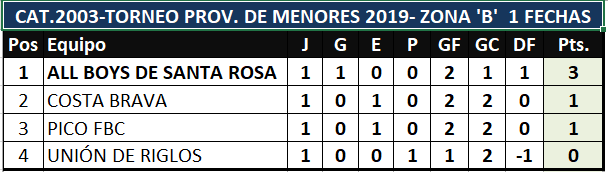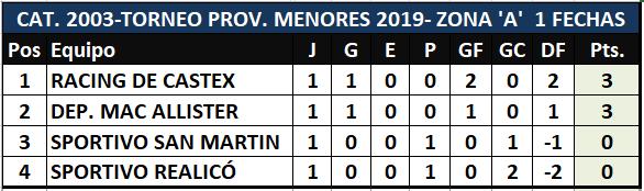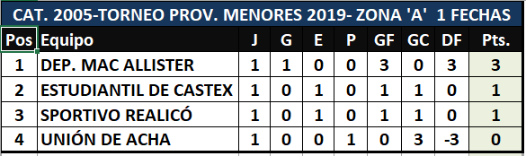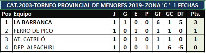 En el día de hoy dio inicio el torneo provincial de fútbol "Clubes con Historia" para las categorías juveniles 2003 y 2005. La primera fecha se disputó en su totalidad para las zonas A,B y C de ambas y estos fueron los resultados, tabla de posiciones y lo que se viene.