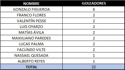 TOTAL : Marcó 22 goles y le convirtieron 5.