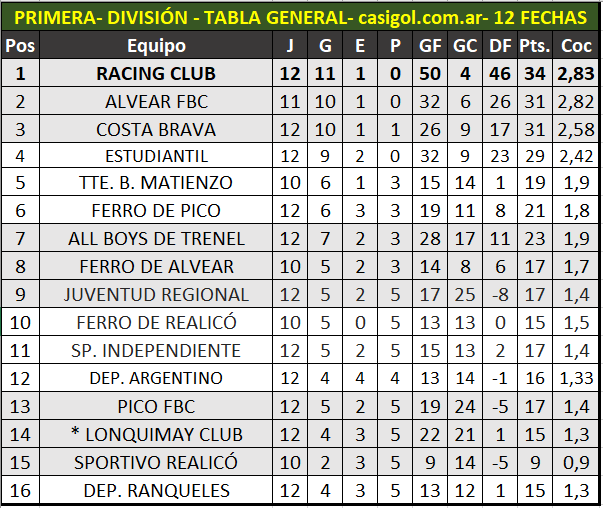 Si hoy terminara la Liga la zona sur es la más compleja porque hay un triple empate en el quinto lugar entre Lonquimay Dep. Ranqueles y Cultura Integral donde uno sería quinto el otro sexto y otro séptimo. Tal cual está todo hoy y por partidos jugados entre ellos Lonquimay sería quinto, Dep. Ranqueles sexto y Cultura Integral séptimo. Pero eso es solo un juego, porque falta mucho aún y en dicha definición por partidos entre si, aún falta un partido entre los igualados que se dará el próximo domingo entre Lonquimay y Dep. Ranqueles.