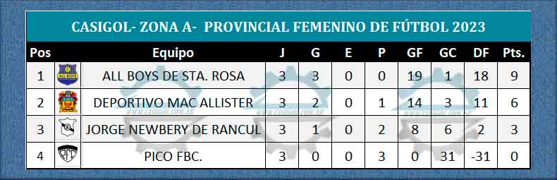 Se disputó la tercera fecha del torneo provincial femenino de fútbol “Ada Cerna”. se conoció la tabla final de ordenamiento y los cruces de cuartos de final.