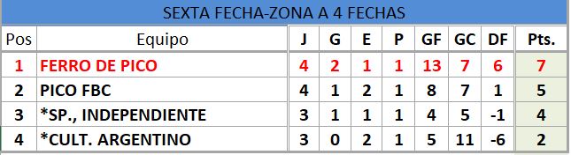 SEXTA DIVISIÓN (CUARTA FECHA)