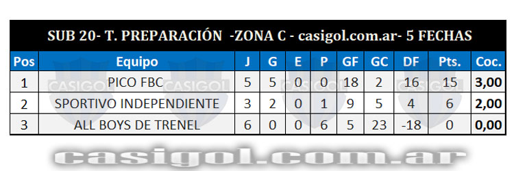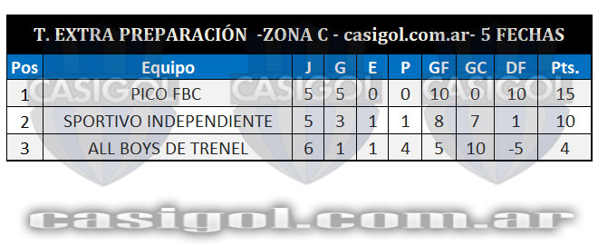 TABLA DE POSICIONES ZONA "C"  PRELIMINAR