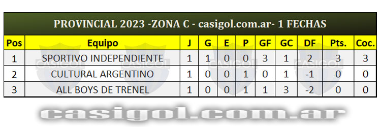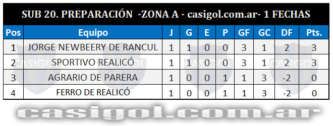 Dio inicio también el torneo preparación para la categoría Sub 20. con estos resultados tablas de posiciones y lo que se viene  en la especialidad para las zonas "A", "B" y "C"