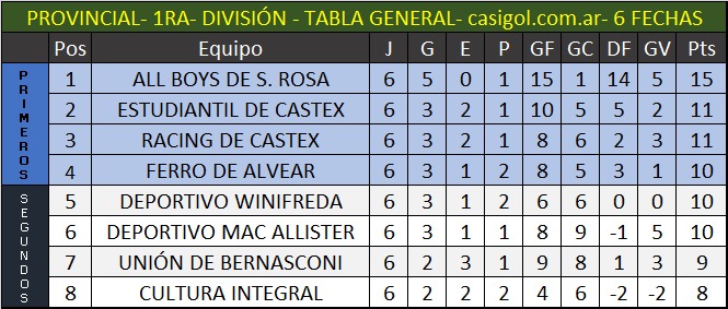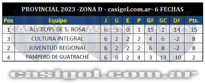 Se disputó la sexta y última fecha del torneo provincial "Néstor Doroni-Mario Ayala".  La fecha dejó una serie de resultados que dejaron los ocho clasificados que lucharán por el título del máximo galardón que en fútbol otorga la provincia de La Pampa.  La síntesis, los clasificados y los cruces de cuartos de final lo dejamos para ustedes a continuación en esta nota.