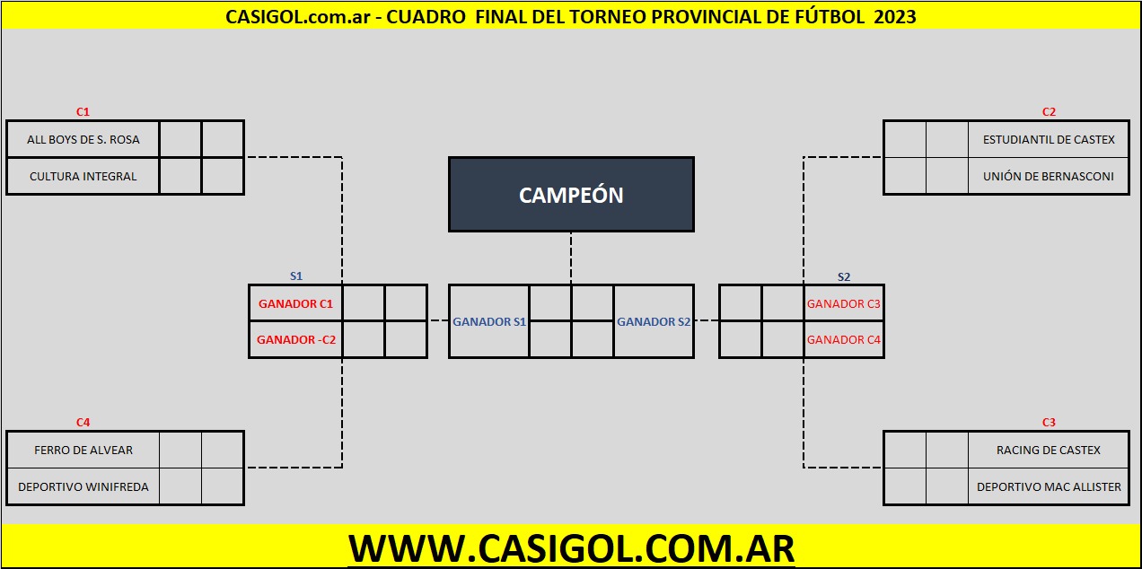 TORNEO PROVINCIAL CLASIFICADOS Y CRUCES DE CUARTOS DE FINAL